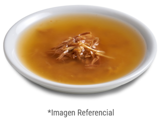 Caldo de carne de pollo y pato (84 %); carne de pollo (9 %); carne de pato (6 %); minerales (1 %); fósforo 0,016%
